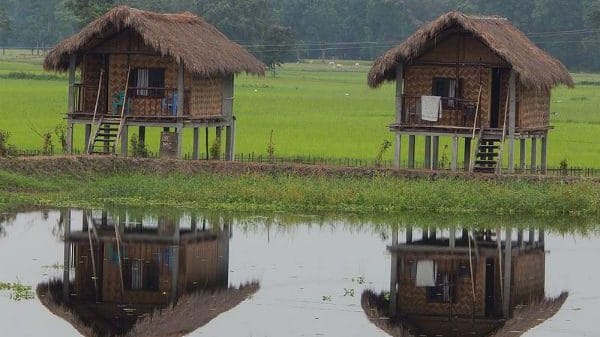 माजुली द्वीप का आनंद लेने का सबसे अच्छा तरीका बांस की झोपड़ी में ठहरना है, जिसकी कीमत ऑफ-सीज़न में लगभग 600 रुपये प्रति रात और पीक सीज़न में 1000 रुपये से ज़्यादा है।